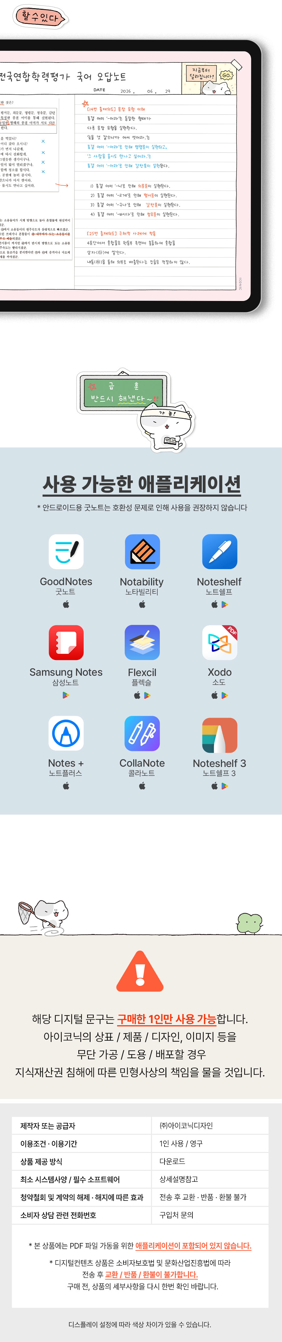 두들 세로 노트패드 굿노트속지 [품절]